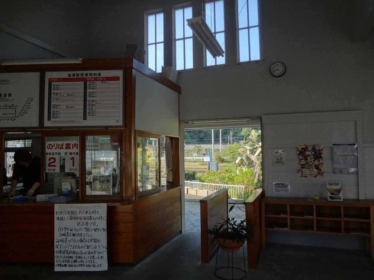 駅は無人化されるところでしたが、現在は日南市の観光協会が入居して出札業務を受託して営業を続けています。なので改札口付近も人の温か味が残っていていい感じです。