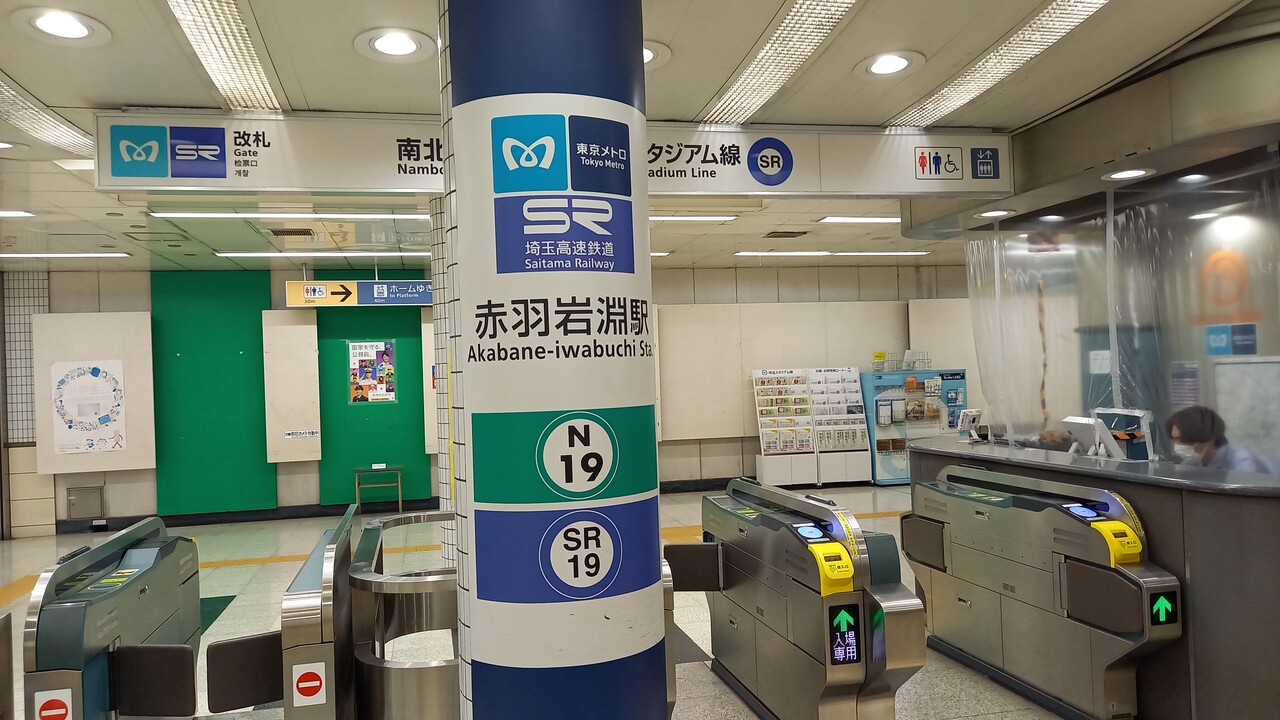 そういう経緯があるため、当駅の駅名標関連看板は東京メトロと埼玉高速鉄道のダブルネームとなっています。駅番号はN-19とSR-19で、埼玉高速鉄道埼玉スタジアム線の起点駅である当駅を1としないのは、この路線が実質的に南北線と一体化されていることから南北線の起点である目黒駅からの続番としています。