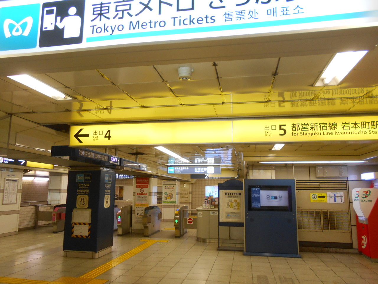 岩本町方面改札口は2011年までは一部時間帯閉鎖でしたが、運賃計算制度変更による都営新宿線岩本町駅との連絡運輸開始から終日オープンになりました。といっても秋葉原中心部から少し離れていることもあり、平日の通勤時間帯以外は意外と静かです。