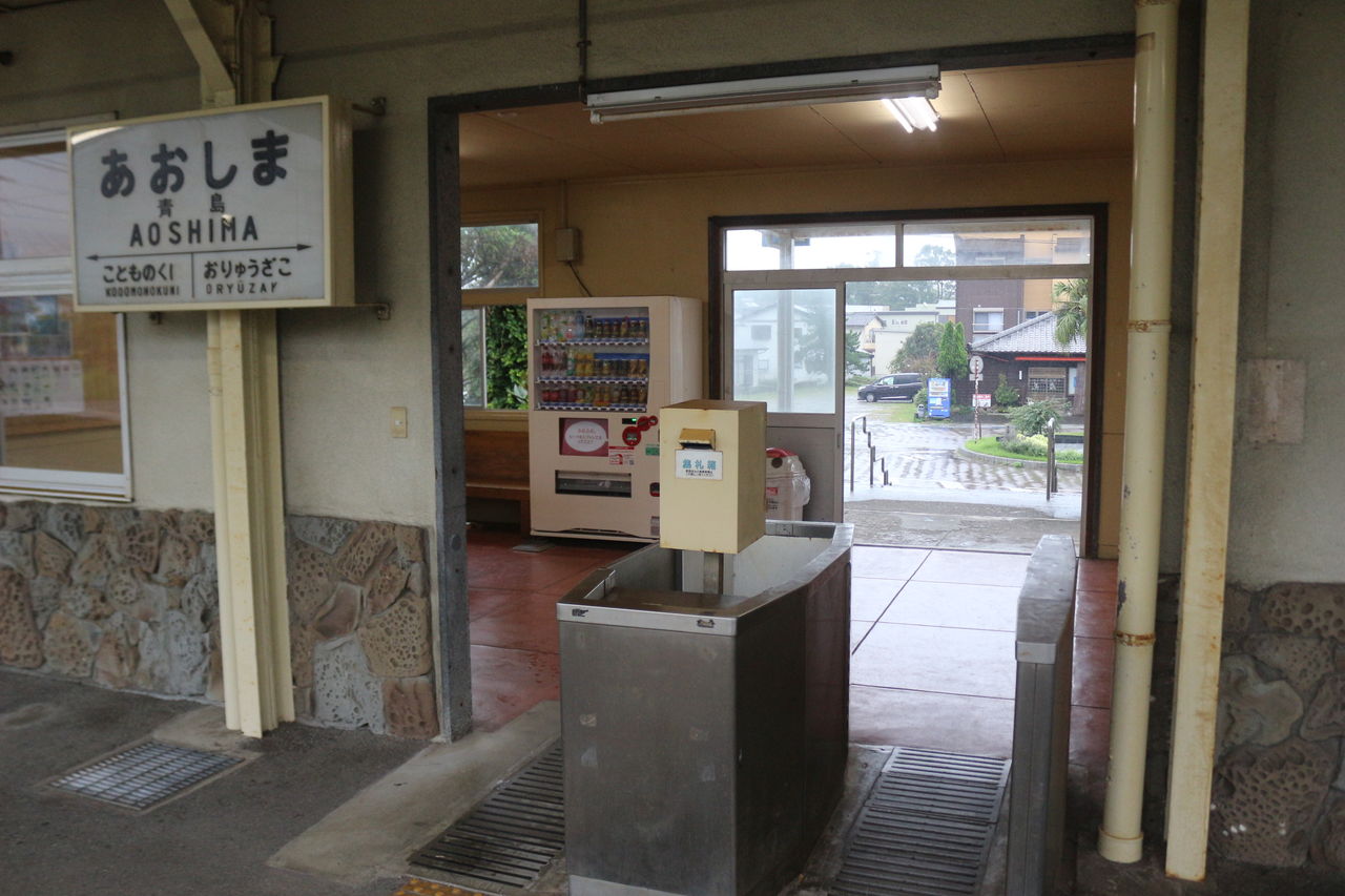 近隣の観光名所の島「青島」が由来の駅です。立派な駅舎ですが、現在は無人駅となっています。