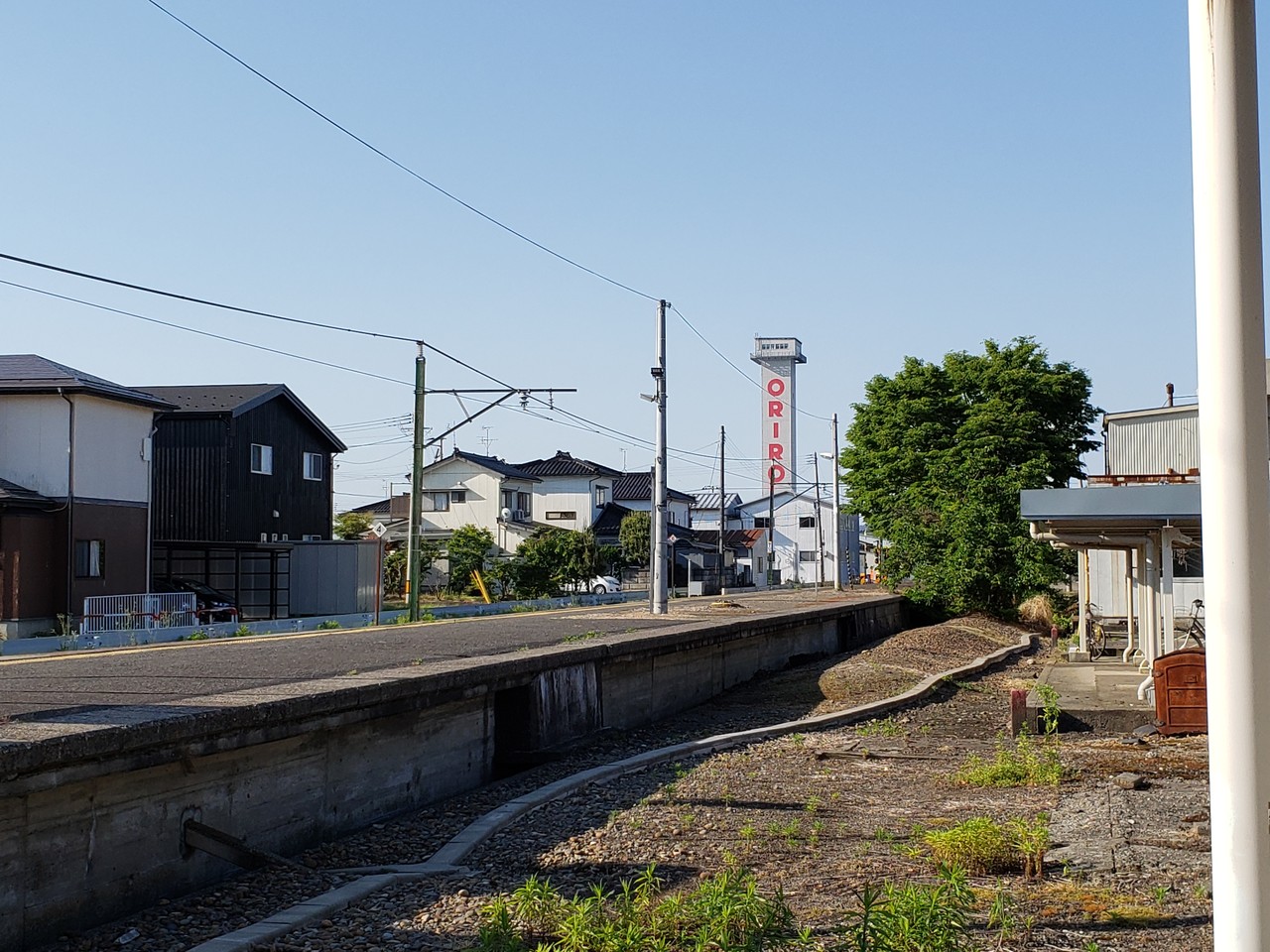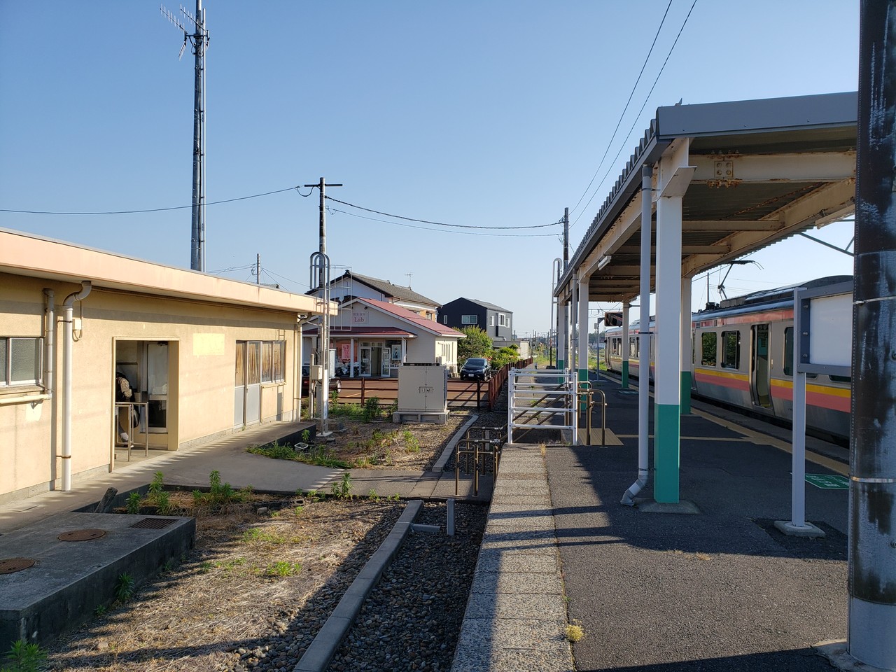 なので駅舎とホームの間にはこのように線路跡の空間があります。