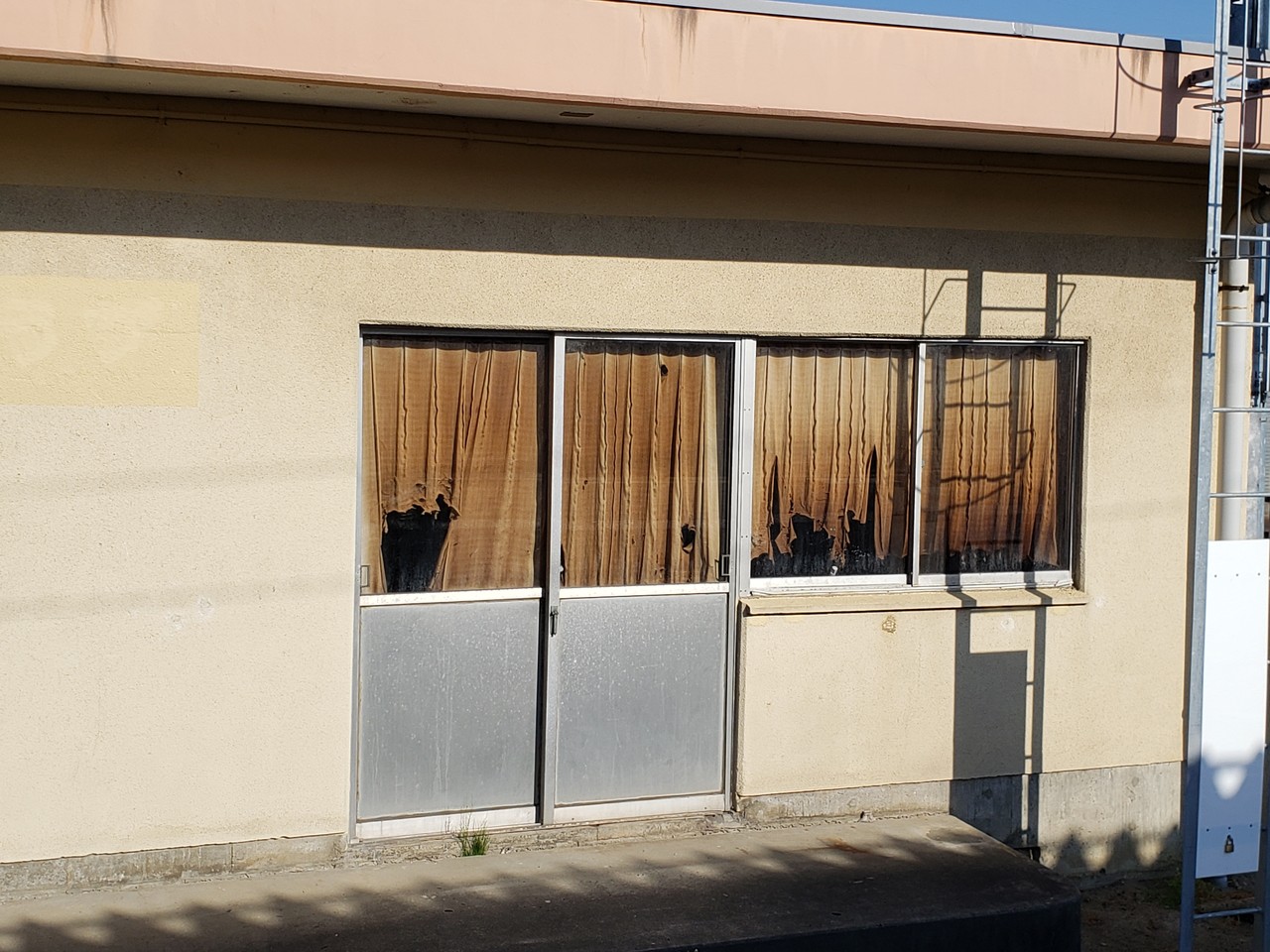 駅係員事務室跡の中にあるカーテン・・・殆ど手入れが行われていないことを如実に示しています。