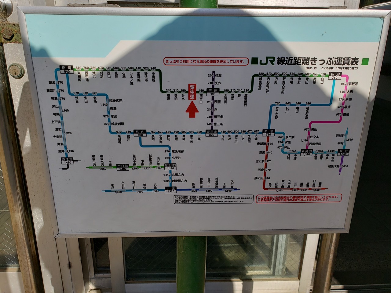 当駅の運賃表です(消費税8パーセント時代のもの)。
