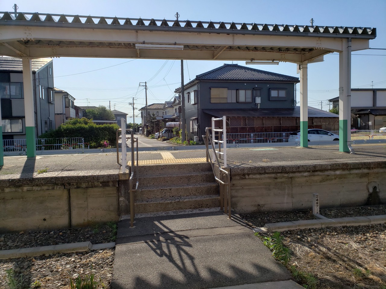 駅舎から出るとホームに階段が設けられていて、跨線橋を登り降りする必要はありません。