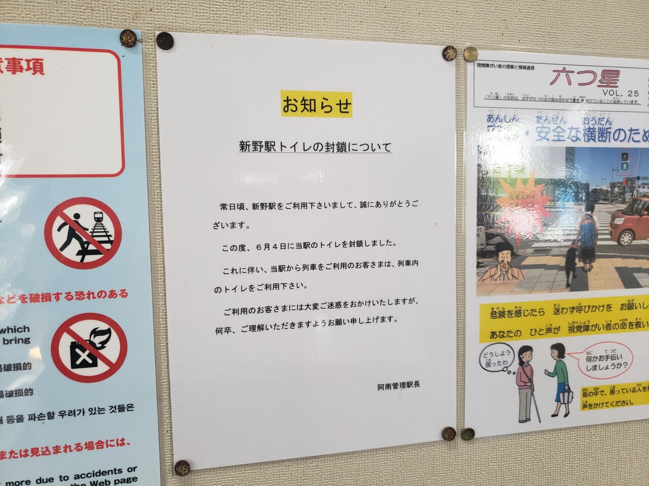 当駅のトイレは平成元(2019)年6月4日をもって閉鎖されています。