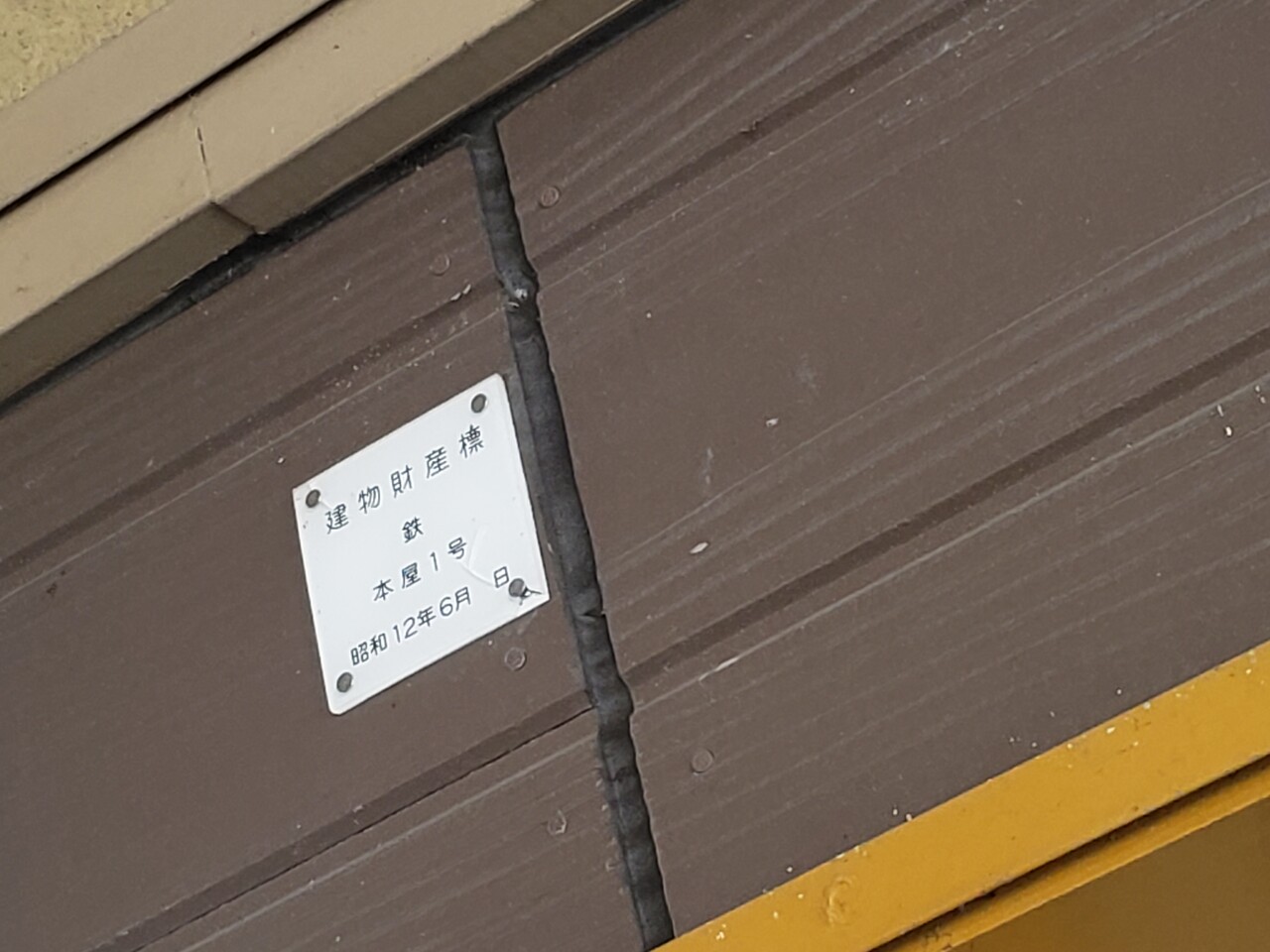 建物には1937(昭和12)年6月に竣工した旨を示す建物財産標が貼付されています。
