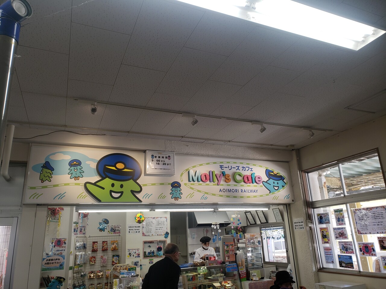 JR時代にKIOSKがあった場所に青い森鉄道さんが直営している売店が営業しています。青い森鉄道グッズはここで販売されています。