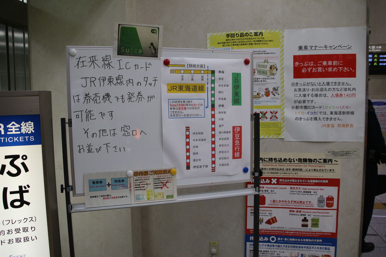 この案内はSuica等のICカード乗車券で伊東線及び東海道線の当駅以南(函南駅方面)について説明されていますが、当駅以東(湯河原駅方面)の場合は新幹線券売機は対応をしてくれないのでしょうか???
