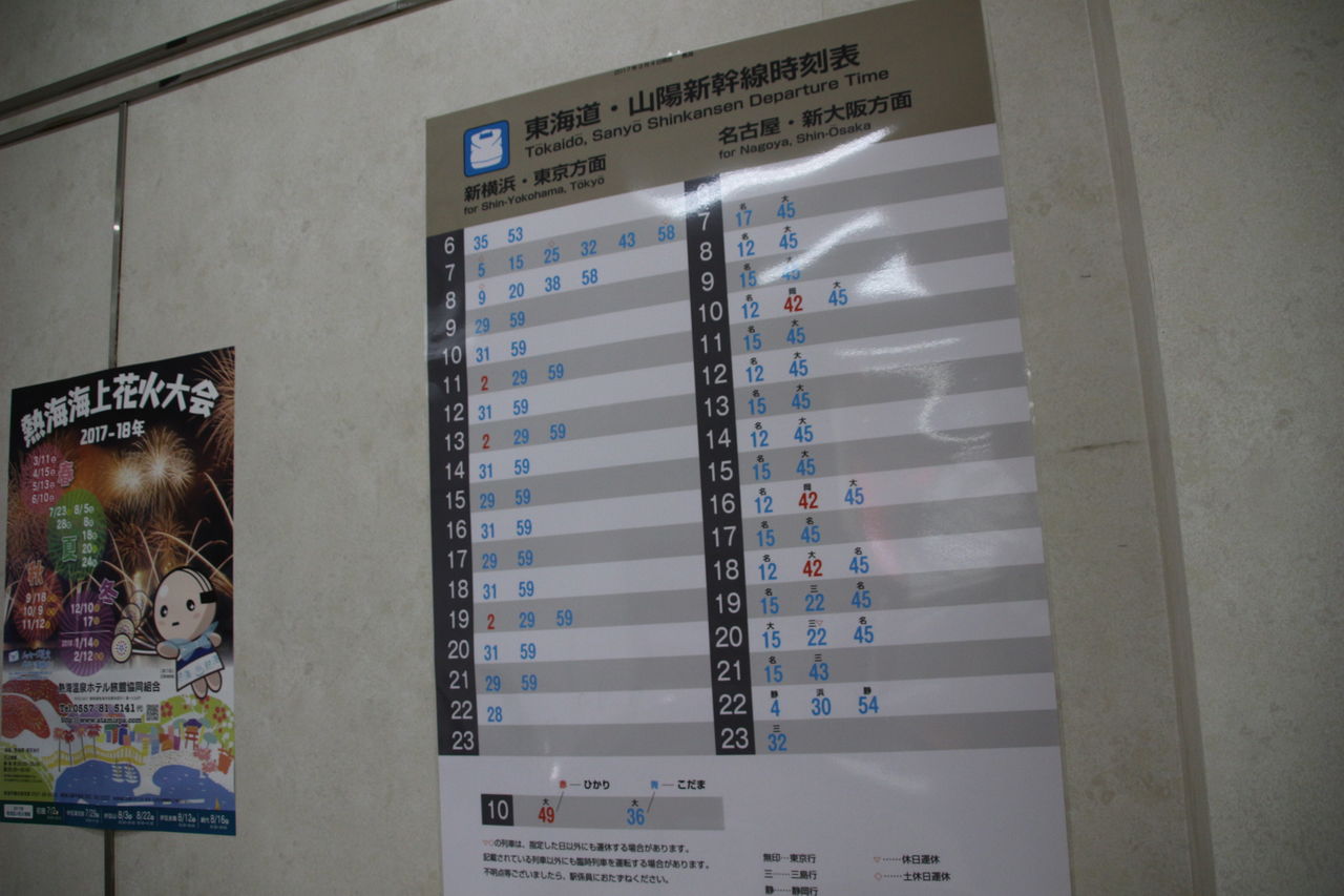 当駅は基本的には「こだま」号が停車しますが、上り・下りが3本ずつ、合計6本の「ひかり」号が停車します。当駅に停車するひかり号の次の停車駅は下りがいずれも静岡駅、上りは新横浜駅となっています。