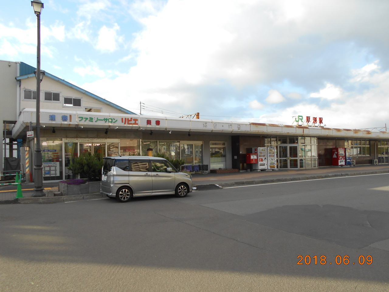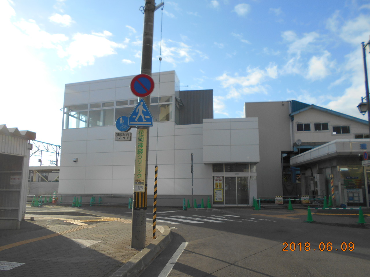 2003年訪問時と同じ建物ですが、左側に店舗がテナントとして入居しています。当ページ冒頭の2003年駅舎画像と見比べると、2018年撮影画像にはテナントの店舗屋号などが建物に貼付されているなどの違いが確認できます。ということは2003年当時はここは空きスペースだったのかと。。。