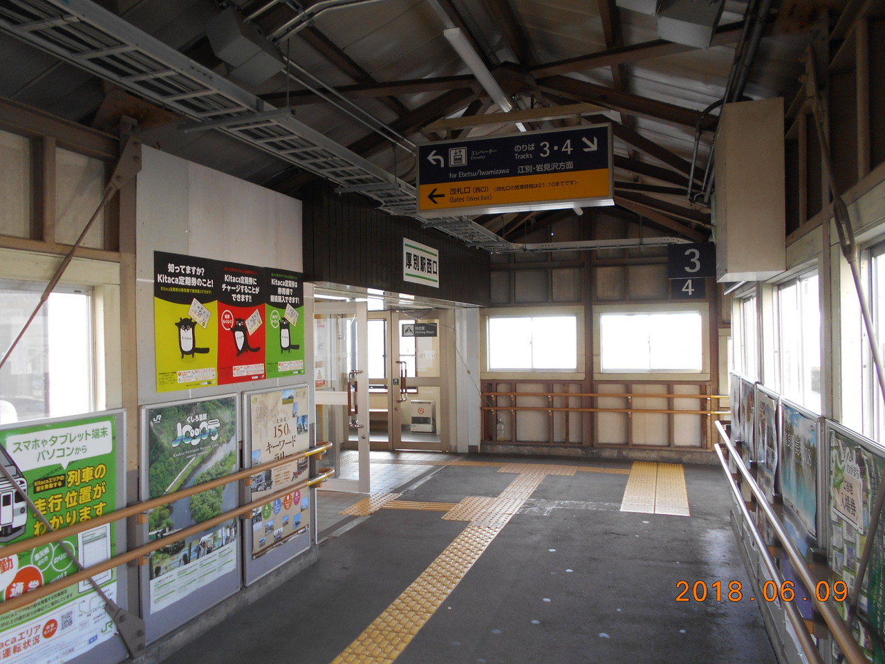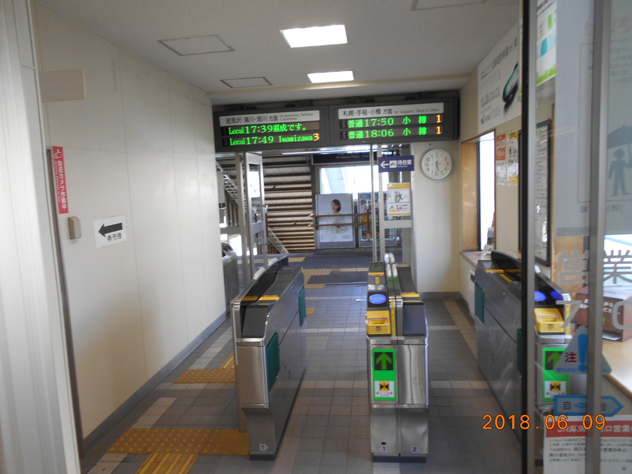 構内跨線橋内の西口改札口。よ~く見ると待合室があることがわかります。