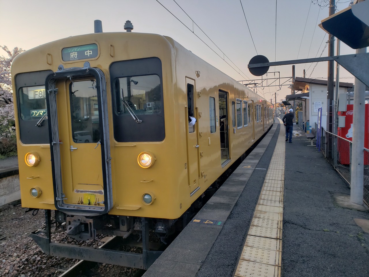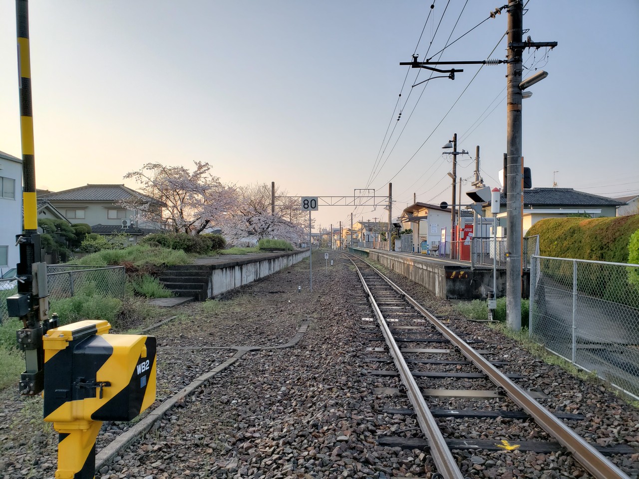 前述のとおり、当駅にはかつて使われていたホームが撤去されずに残されています。訪問した日は桜がきれいに咲いていました。