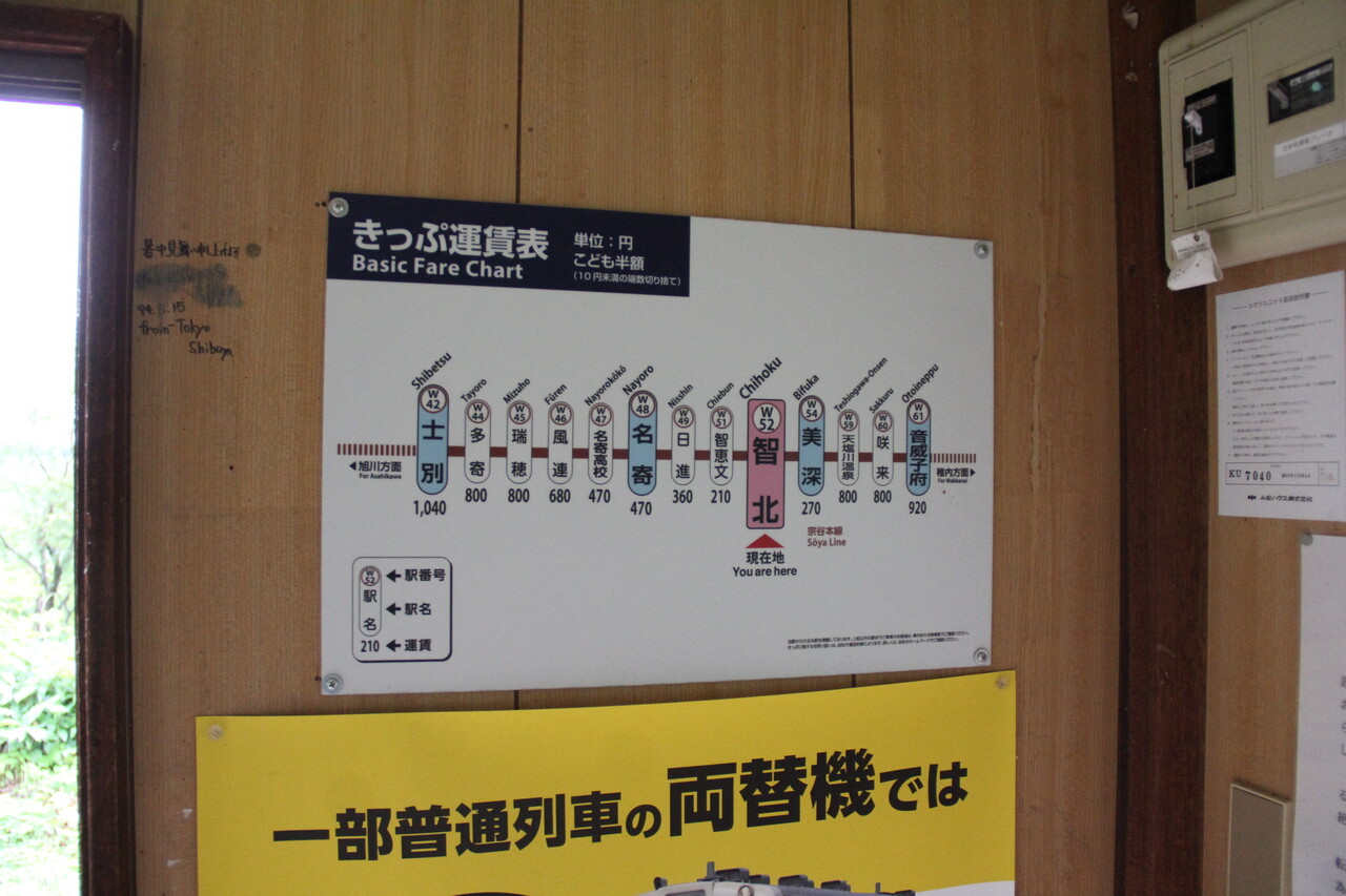 運賃表です。美深までは270円、名寄までは470円、この表にはありませんが旭川までは2,480円です。