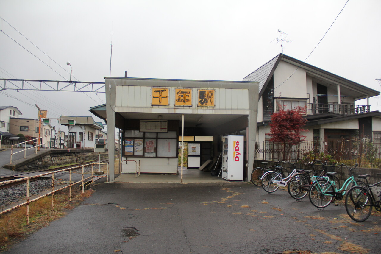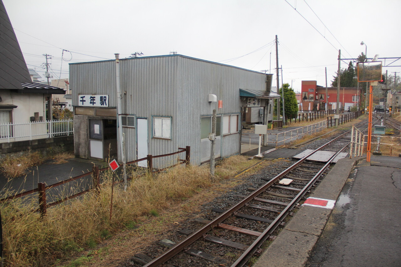 ホームと駅舎へは構内踏切を横断します。当駅は昭和61年まで「津軽千年」を名乗っていましたが、同年4月より現在の駅名へ改称しています。日本国内には当駅を含め「ちとせ」を名乗る駅が3駅ありますが、当駅以外は「千歳」と表記します。
