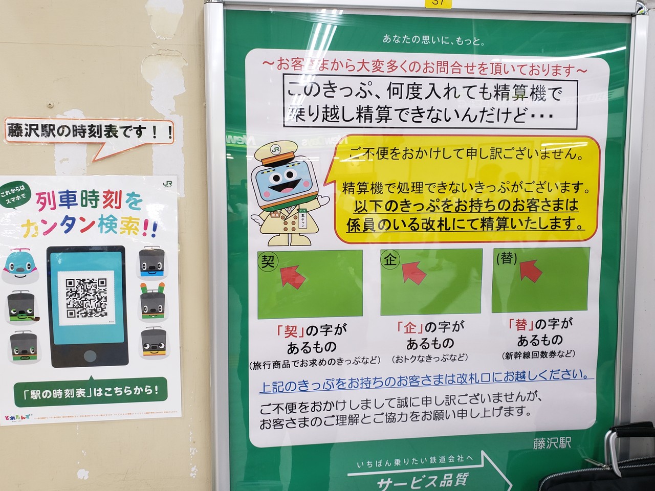 また、この乗り換え改札口は有人通路を設けていないので、自動精算機を使うことができない乗車券類の精算処理を受け付けていません。例えば根府川駅や御殿場線の無人駅から乗車券を購入しないで(乗車駅証明書は持っている)この改札口で精算を希望しても受け付けませんという意味なのでしょう。