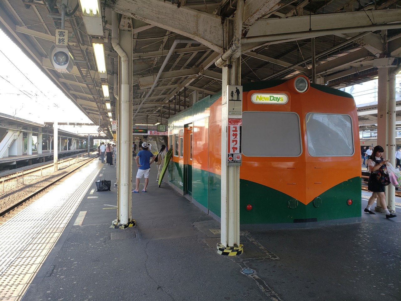3,4番線ホームにはかつて東海道線で活躍した湘南電車を模した売店が設置されています。2006年からこの売店の業態がNewDaysへ変更されていることから、運行番号表示欄を模した店名表示が変更されています。