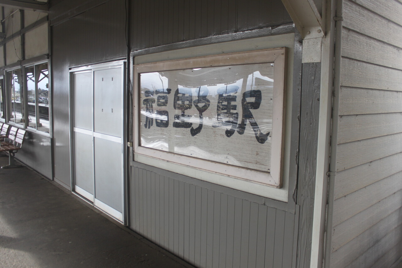 駅舎のホーム側には駅舎改修工事時に取り外して廃棄する予定であった昭和45年製の駅名看板が腐食防止の対策を施したうえで展示されています。