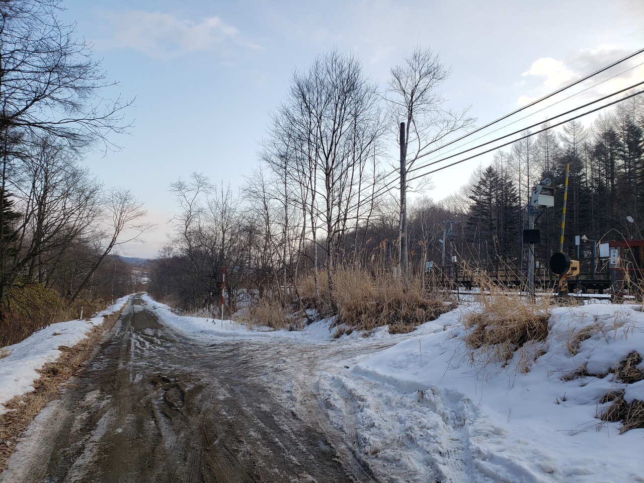古瀬駅といえばこの建物。駅前の道は未舗装ながら白糠町道なので立派な公道です。2003年に訪問した際は雪で溢れていましたが、昨今の温暖化と今回訪問時の記録的な暖冬傾向のお陰で側溝が確認できます。