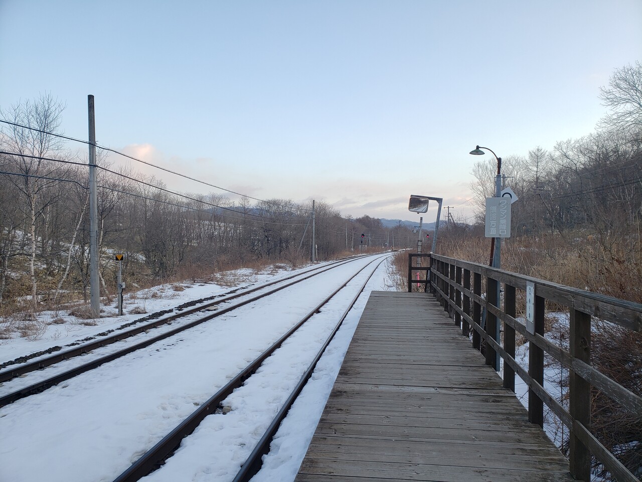 当駅は信号場として1954年に開設され、1971年に無人化されています。当駅の近隣には鉄道職員官舎あって、北海道で多く見られた「仮乗降場」という体裁で細々と営業をしていました。その時のメインターゲットは官舎在住の家族。しかしその官舎が影も形も消えてなくなった現在、当駅の利用者は殆ど居ないとみられますが、1987年にJR化とともに仮乗降場から正式な「駅」へ格上げされて現在に至っています。