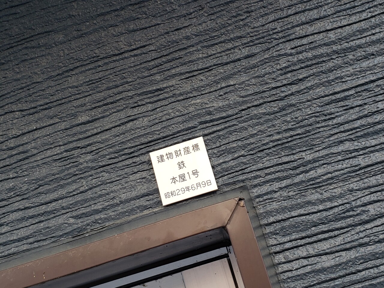 建物の玄関に貼付されている建物財産標によれば1954(昭和29)年6月9日竣工です。後述する2003年訪問時の建物がその後「新築そっくりさん」的な劇的なリフォームを遂げているということがわかりますが、この財産標にはこの建物が「本屋1号」となっていて、帳簿上は駅舎として扱われていることに驚きます。といっても駅舎=旅客の利便性のためのものではないと考えれば「なるほど」と思ってしまいます。