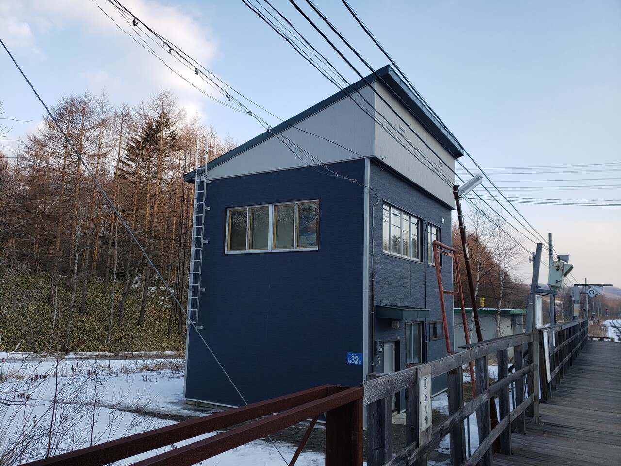 信号場建屋は鉄筋コンクリートと思われる構造ですが、寒さを凌ぐ目的で外壁に木製の板を貼り付けているから驚きます。