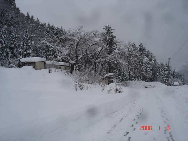 約20段程度登ったところに待合室と乗り場が設置されています。駅前は田園風景が広がっているようですが、自分が乗り降りした時期は豪雪期であったために一面真っ白でした。除雪された通路を3~5分程度歩くと国道に到達する豪快なスロープがありました。