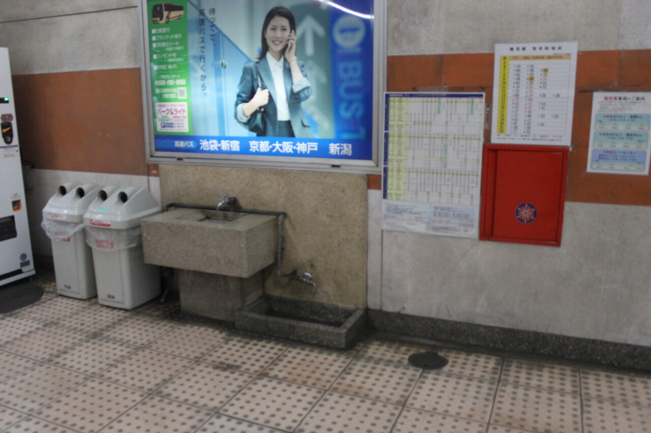 ホームには水道設備が設置されています。一つは飲水利用、もう一つは手や靴などを洗浄する目的で設置されているのかなとみられますが、感染症流行が言われている昨今、このような設備は消滅する方向で進んでいくのかなと。。。