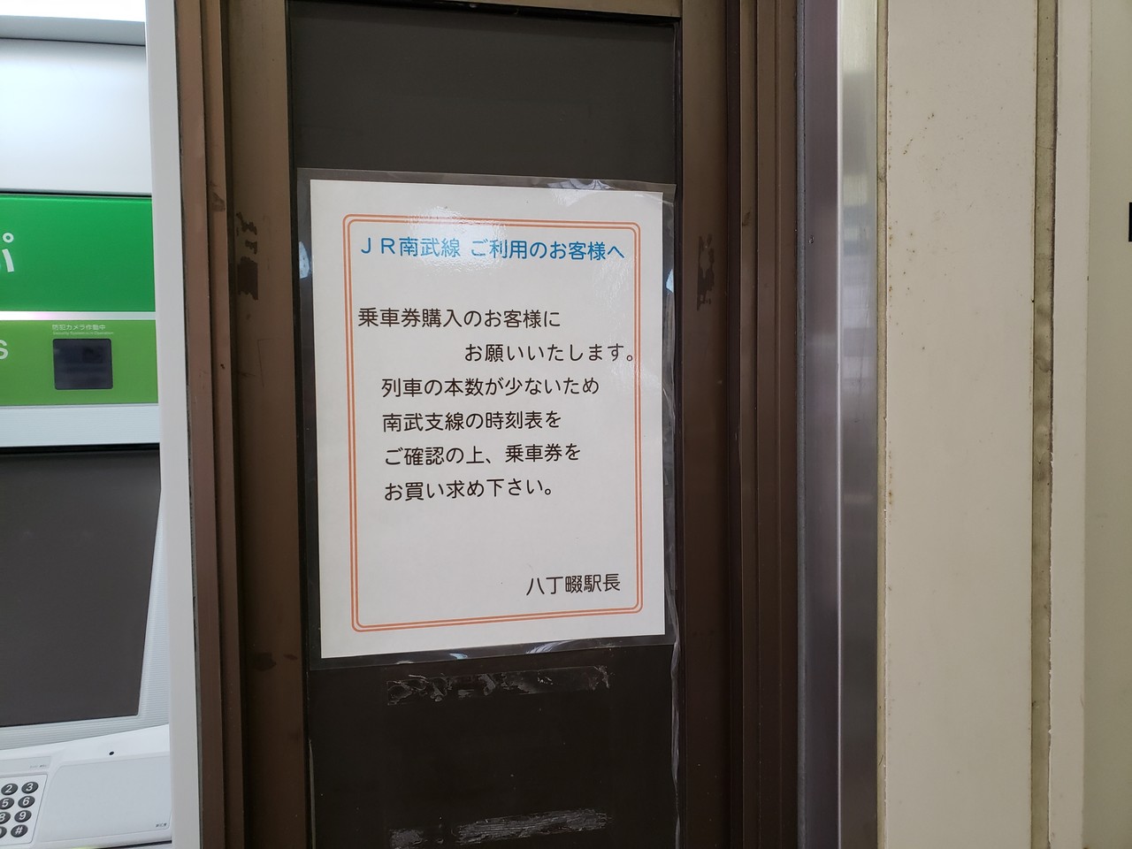 JR線ホームに掲げられている2番線の案内看板…これ、JR様式なのが面白いところです。