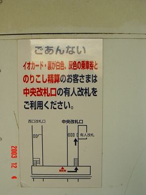 西口改札口は磁気式きっぷ・定期券しか通用しなかったようで、それ以外の乗車券類と当時運用されていたイオカード(自動改札機に直接投入して使う磁気式プリペイドカード)は中央改札口の窓口で処理が必要でした。