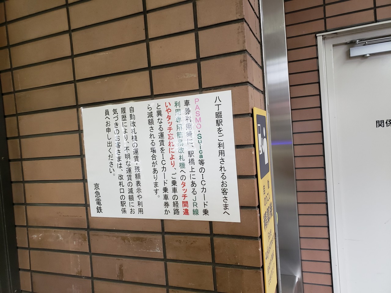 改札内にはこのような案内があります。これによれば当駅をJRで利用するICカード利用者は全てJR線ホームにある乗り換え改札機にタッチしなければ、京急線を経由したと見なして処理されるということなんだそうです。
