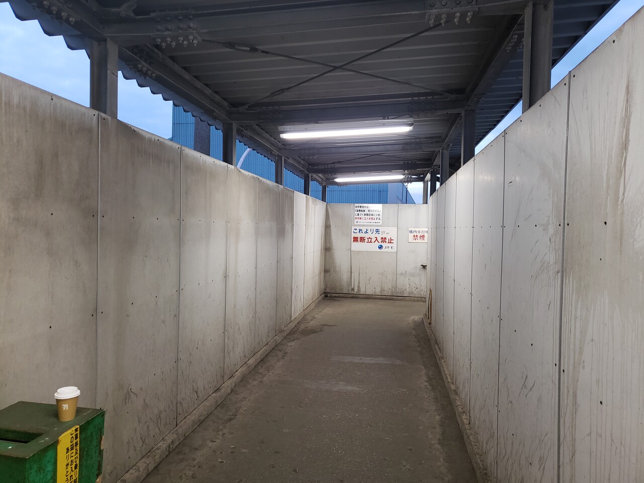 鶴見線側の跨線橋の先、JFE東日本さんの専用出入口です。本来は撮影NGなアングルですが、門番さんの許可を得て全景を撮影することに成功しました。