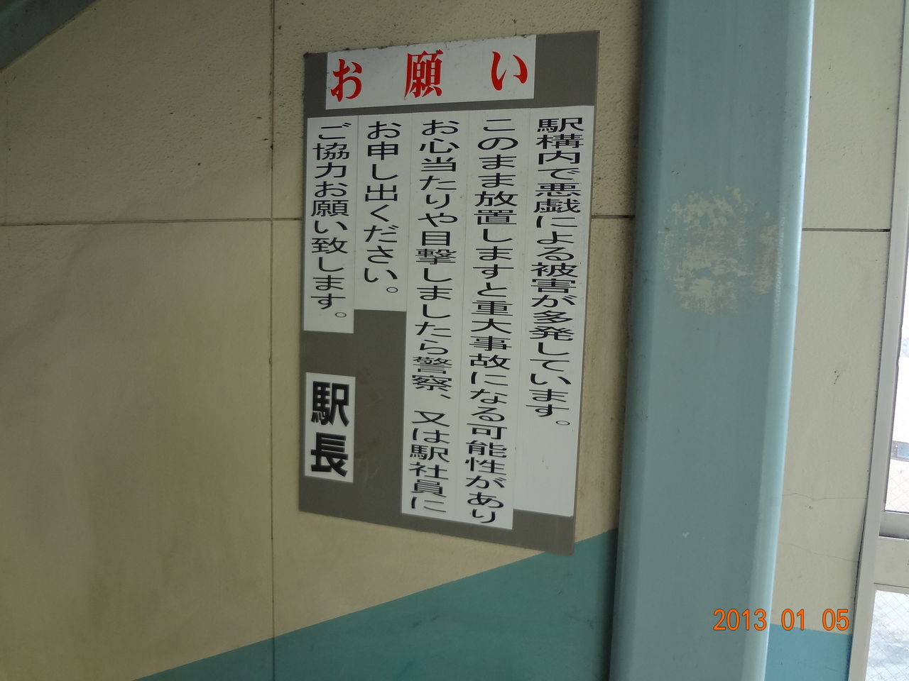 駅の階段付近にはこのような穏やかではない注意書きが掲出されています。