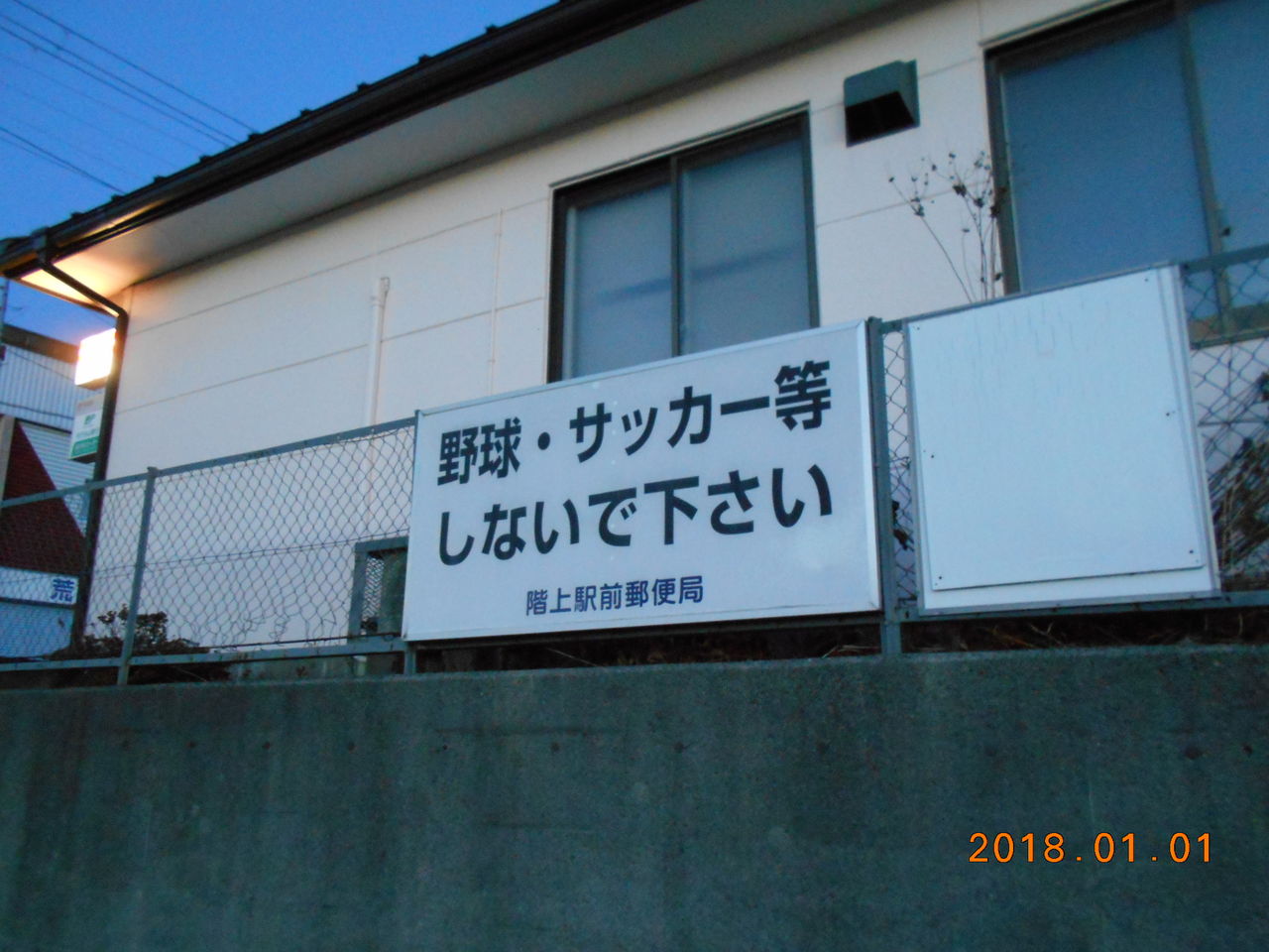 駅前はサッカーや野球ができるほど広い広場になっていますが、隣接している郵便局によりそれが禁じられています。