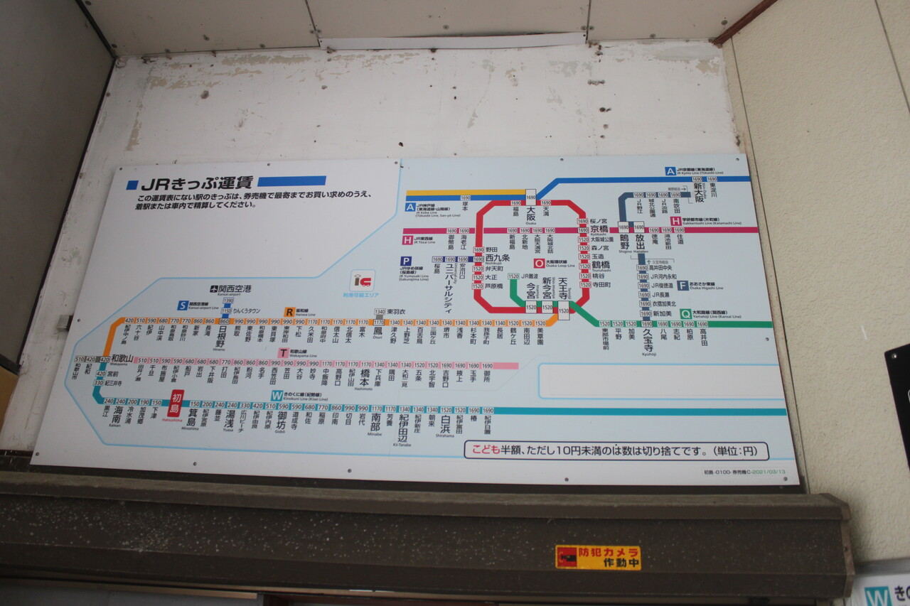 運賃表です。和歌山駅までは420円、和歌山市駅までは510円、関西空港駅までは1,390円、天王寺・弁天町~大阪城公園)駅までと白浜駅までは1,520円となっています。