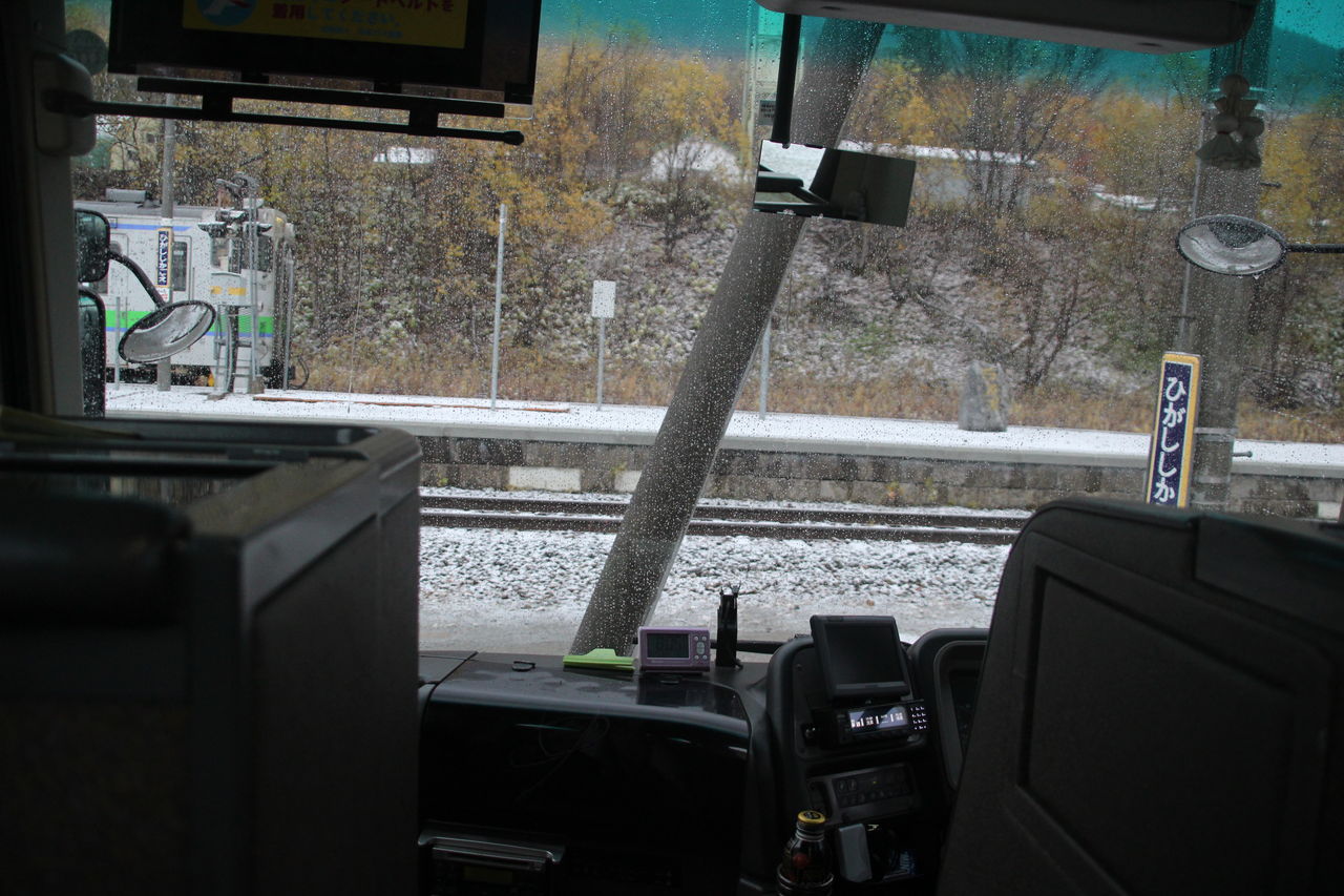 2017年10月に訪問した代行バスの乗り換え風景はこんな感じ。旭川駅を5時台に発車する富良野線から富良野駅で当駅行きの根室線に乗り換えると当駅8時09分発の列車代行バスに乗り継ぐことが出来ます。