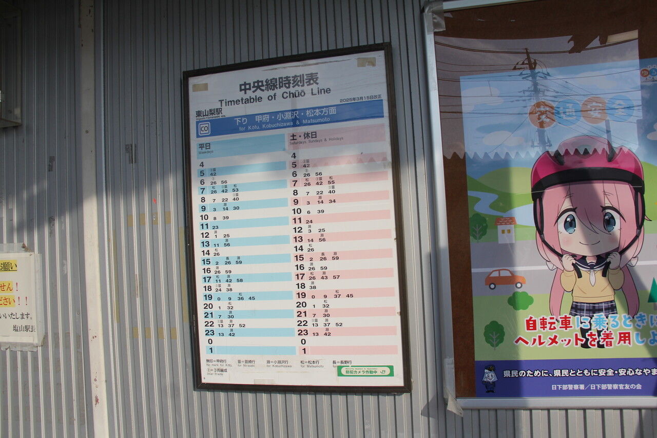 ↑こちらは山梨市・甲府・松本方面、下り線のりばの出入口です。こちらは出るといきなり公道となっています。
