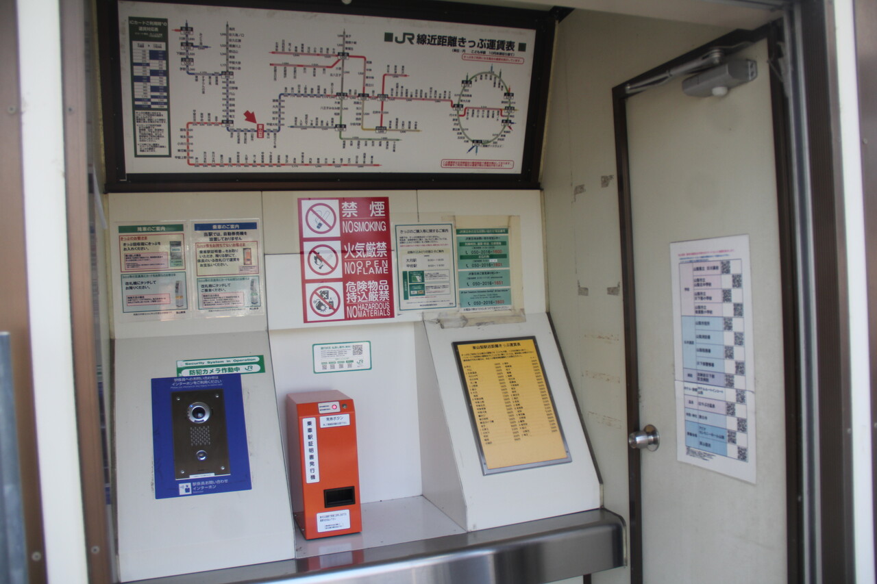 当駅には自動券売機が上り線ホームにのみ設置されていましたが、ここ数年で撤去され、券売機跡には乗車駅証明書の発行マシーンがポツンと置かれています。以前はここの券売機で交通系ICカードのチャージも対応していたのですが、現在は駅の設備でICカードへのチャージは出来ません。