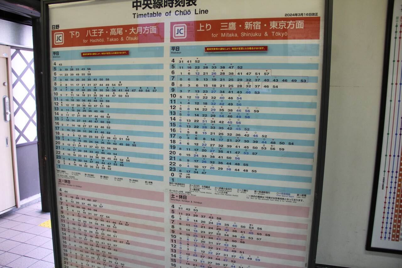 ところで当駅は立地的に東海道新幹線の利用にかなり迷います。品川駅と新横浜駅乗り換え1度を含んでいずれも約1時間弱で736円(新横浜の場合、横浜市内境界駅の長津田駅までは571円)、東京駅までも736円ですが、中央線快速電車で直通でいくことができます。首都圏3駅どこも同じ運賃ですが、新横浜駅からの利用であれば区間によっては東海道新幹線の特急料金が割安になるメリットがあります。なお、JR東日本の新幹線を利用する場合、夕方時間帯は当駅から大宮駅まで直通する「むさしの号」が設定されています(土休日は7時台と9時台にもあります)。