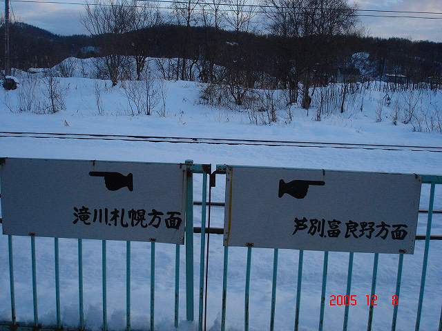 ご丁寧に構内図まできれいに描かれています。構内は駅舎側のホームが芦別・富良野方面行き、跨線橋を横断した側が滝川方面行きホームとなっています。