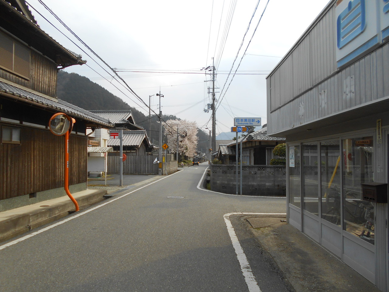 当駅から少し進むとこのような風景が広がっています。商店や郵便局があります。