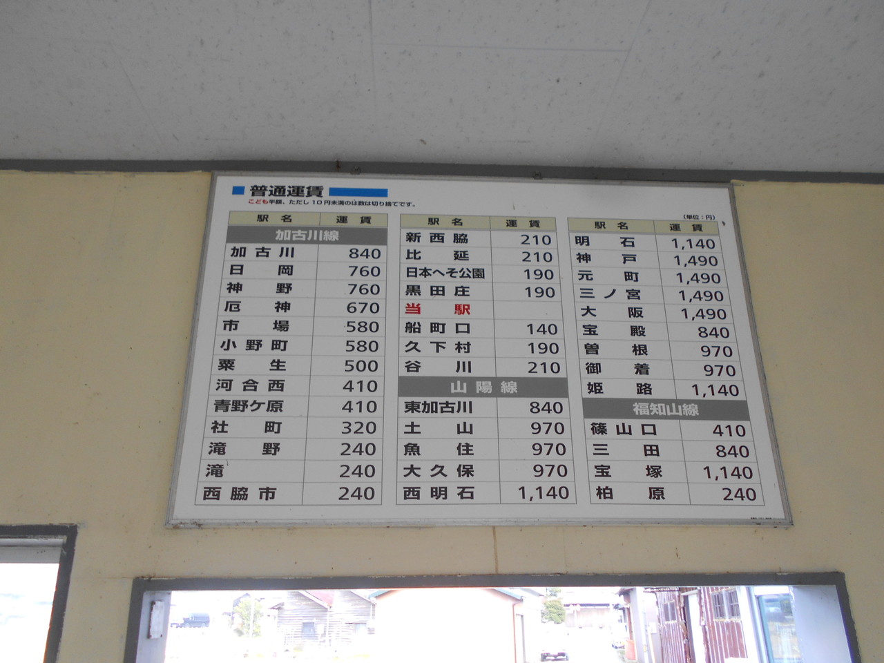 当駅からの運賃表です。