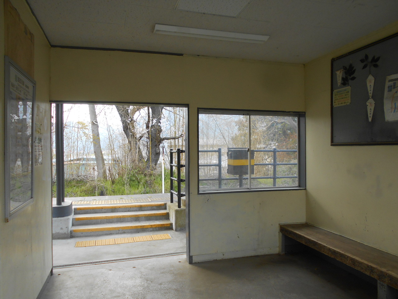 駅舎内部はご覧の通り。長いすが設けられています。