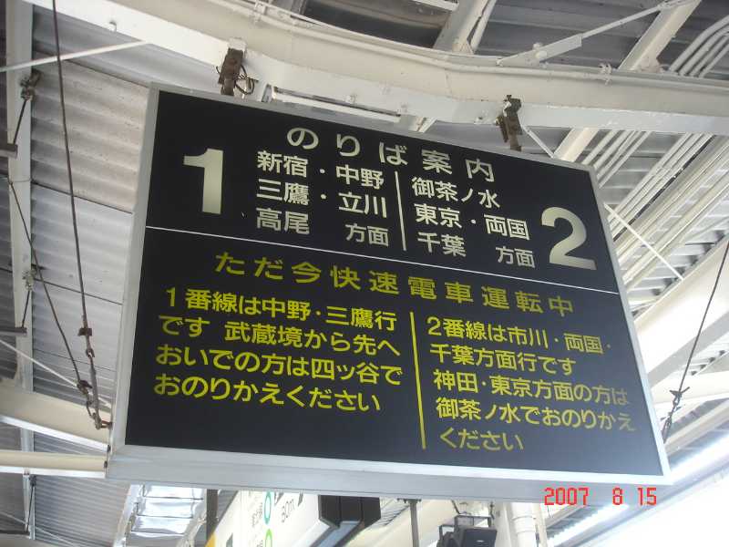 なお。当駅構内の駅名標と東京近郊区間内走行列車内掲出の地図、モバイルSuicaの利用履歴の漢字表記、JR東日本公式サイトは「市ケ谷」となっていますが、2007年撮影時の駅舎の表記は「市ヶ谷」となっています。地名としては「市ヶ谷」「市ケ谷」という表記はなく、「市谷○○町」と言う地名が存在しています。
