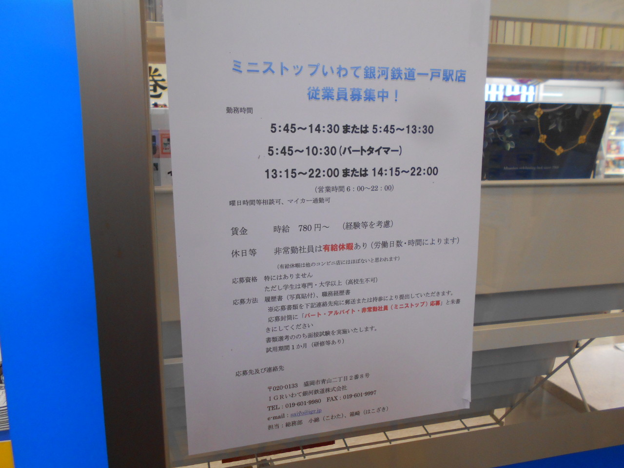 駅構内にはこのミニストップ店舗の従業員を募集する貼紙がありましたが、当駅のミニストップはIGRさんの直営事業なんですね。