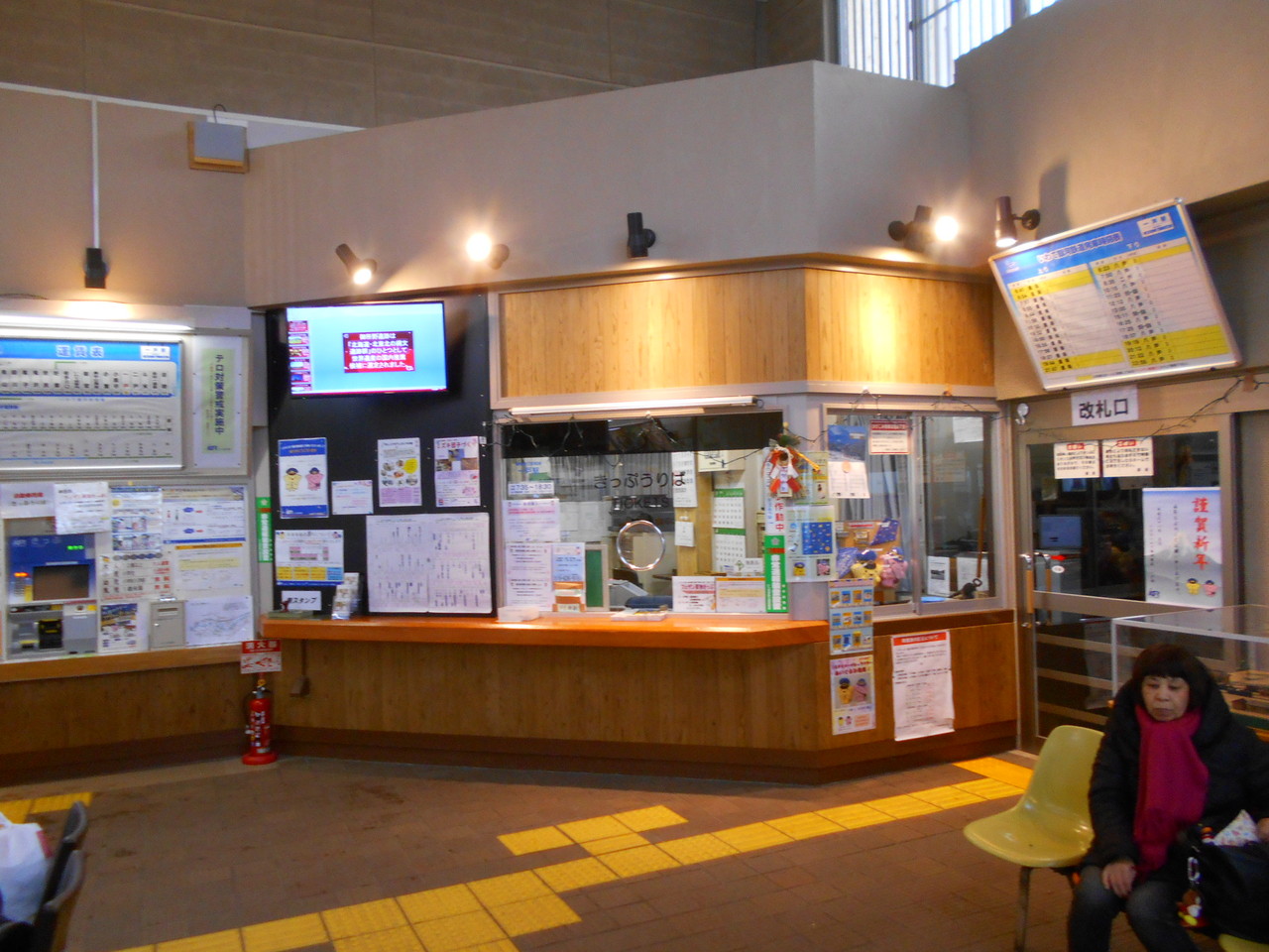 駅舎内はこんな感じで窓口や改札口がしっかりと設けられていて明るい印象。