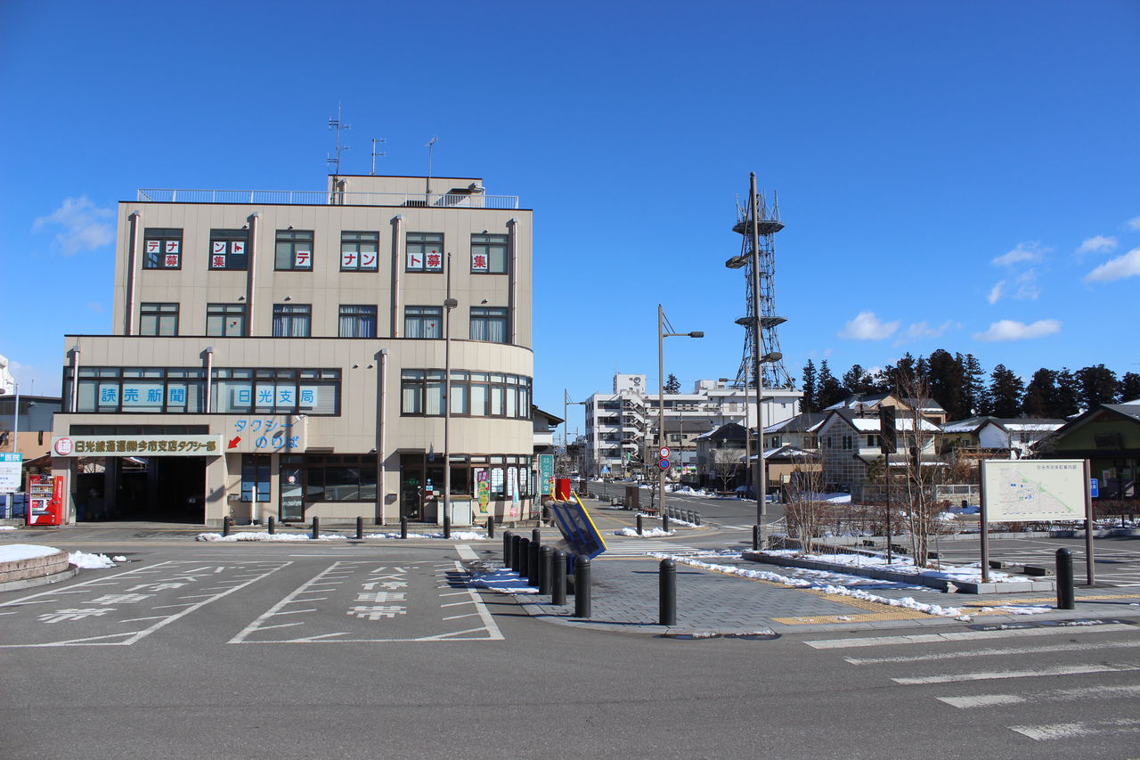 区画が多少整理されていて、広々とした印象の当駅前の様子です。近隣にある道の駅「日光街道 ニコニコ本陣」の周囲は賑わっています。「本陣」と聞くと鎧兜を身にまとい軍配を振りかざす難しい顔をした将軍が殺伐とした雰囲気で陣取る様子を勝手に思い浮かべてしまいますが、そんな本陣なのに「ニコニコ」ってなんやねん?!と突っ込みを入れたくなります。その由来を調べると「ニコニコ」をローマ字表記したときに「NIKKO」と「NIKO」の字面がにているからというだけのようで。。。