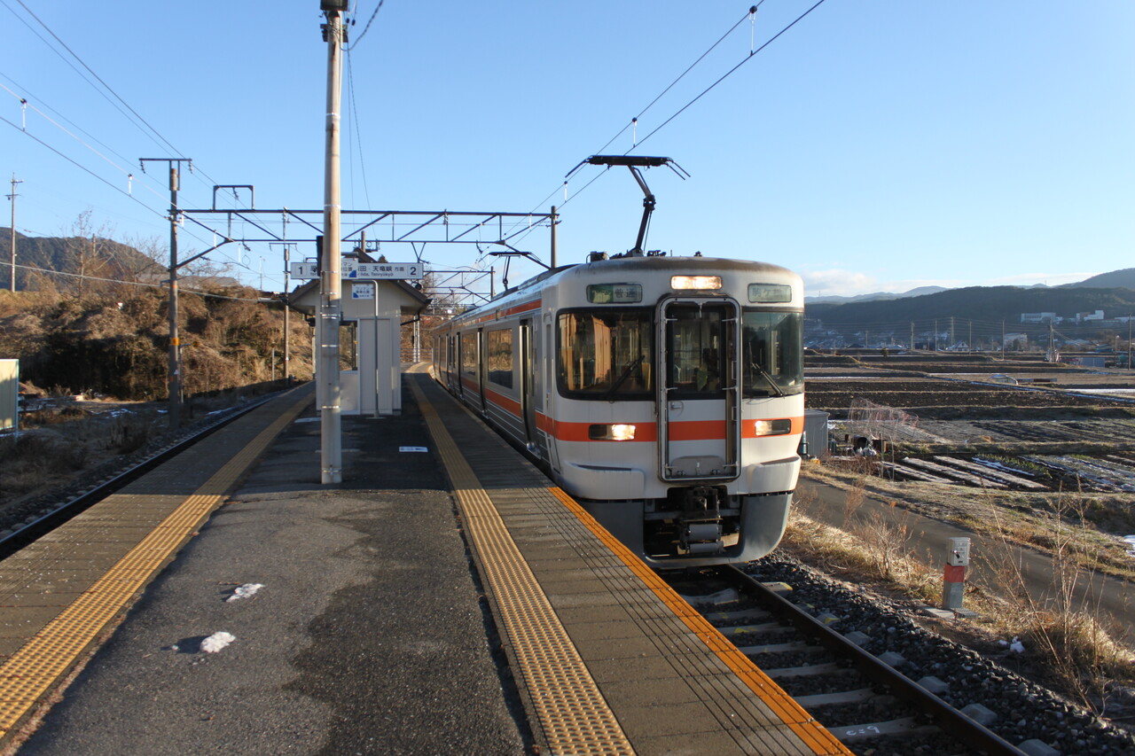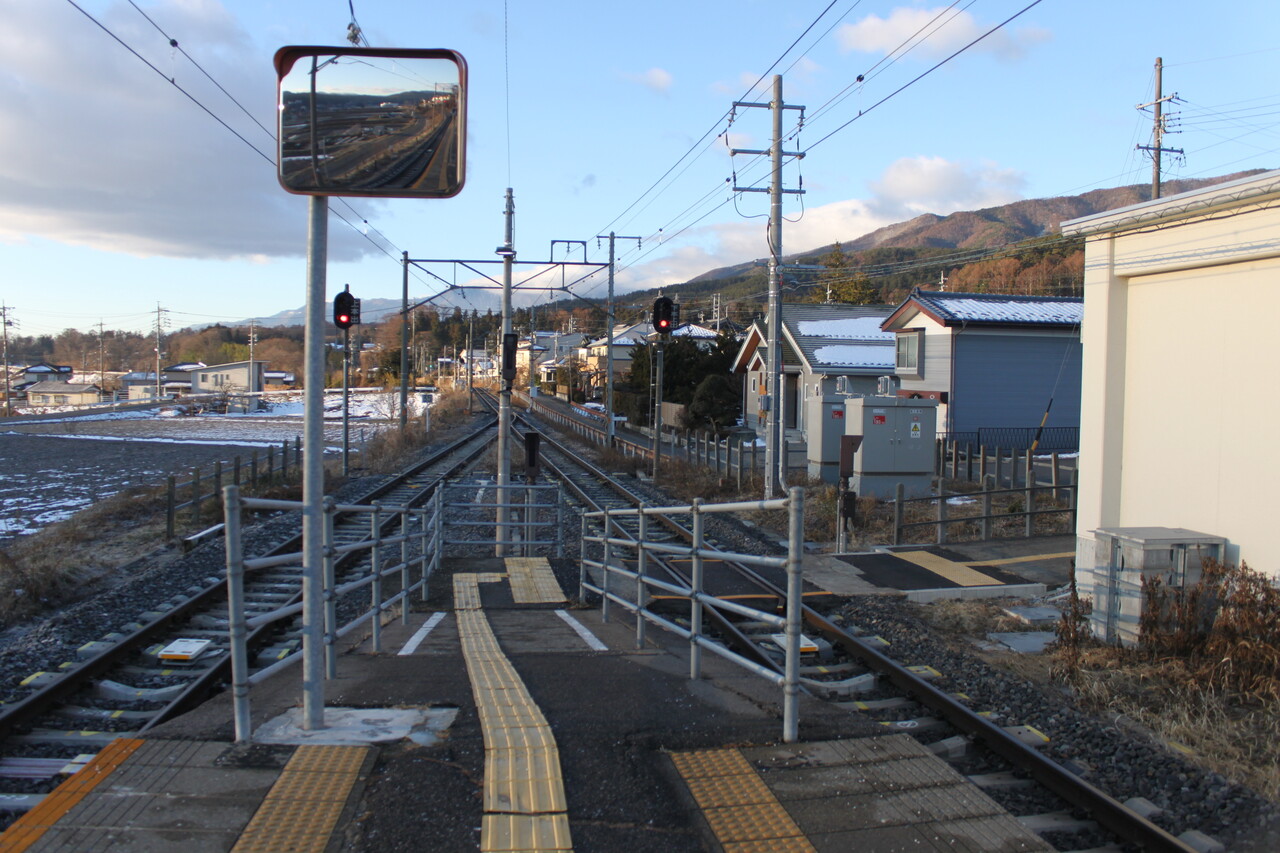 構内は単線上の1面2線です。飯田線的にはJR東日本管轄である辰野駅を前にして最後の交換可能駅となっています。