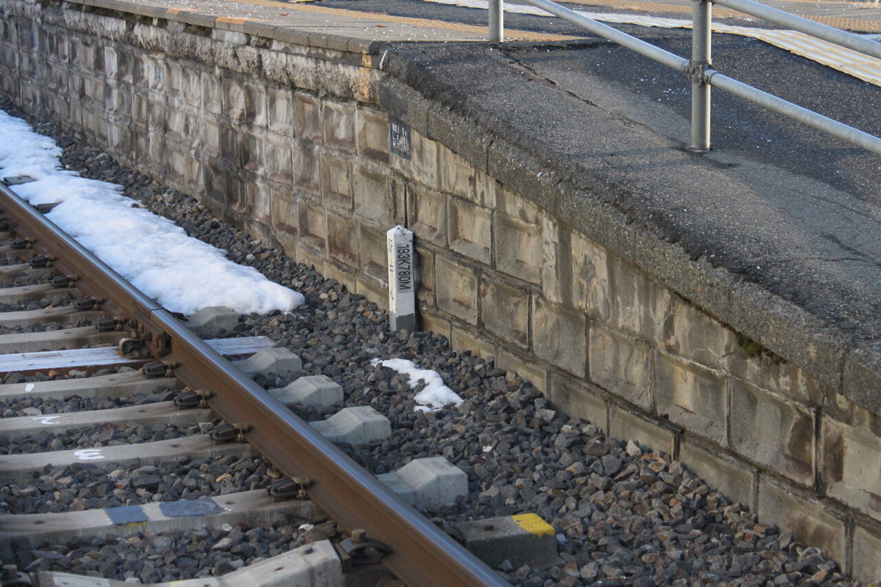 当駅の停車場中心点(193k780m)はホームの豊橋方にこっそり設置されています。