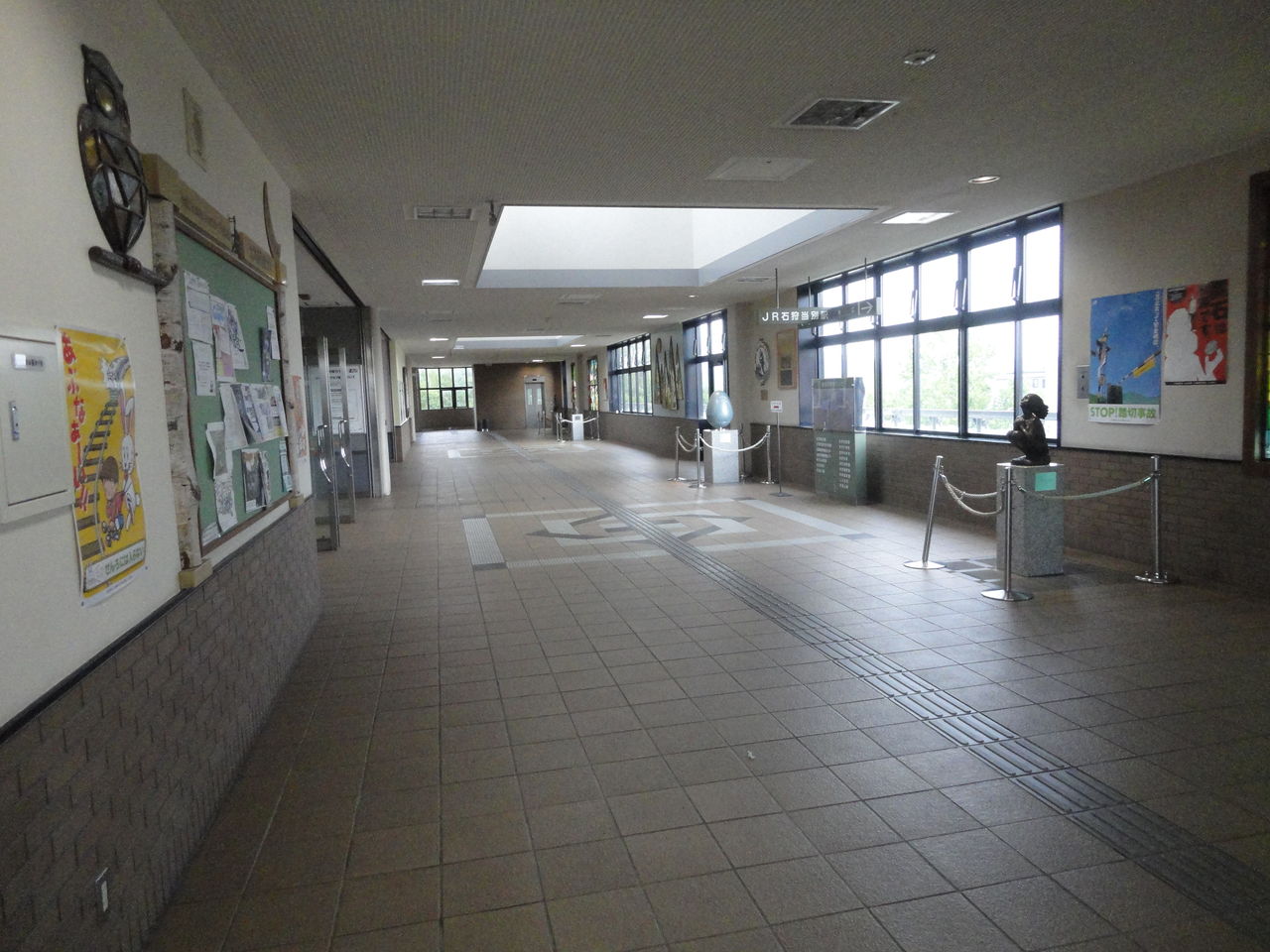 橋上駅舎の通路上は町道となっていて、行政関連のポスターやオブジェが設置されています。