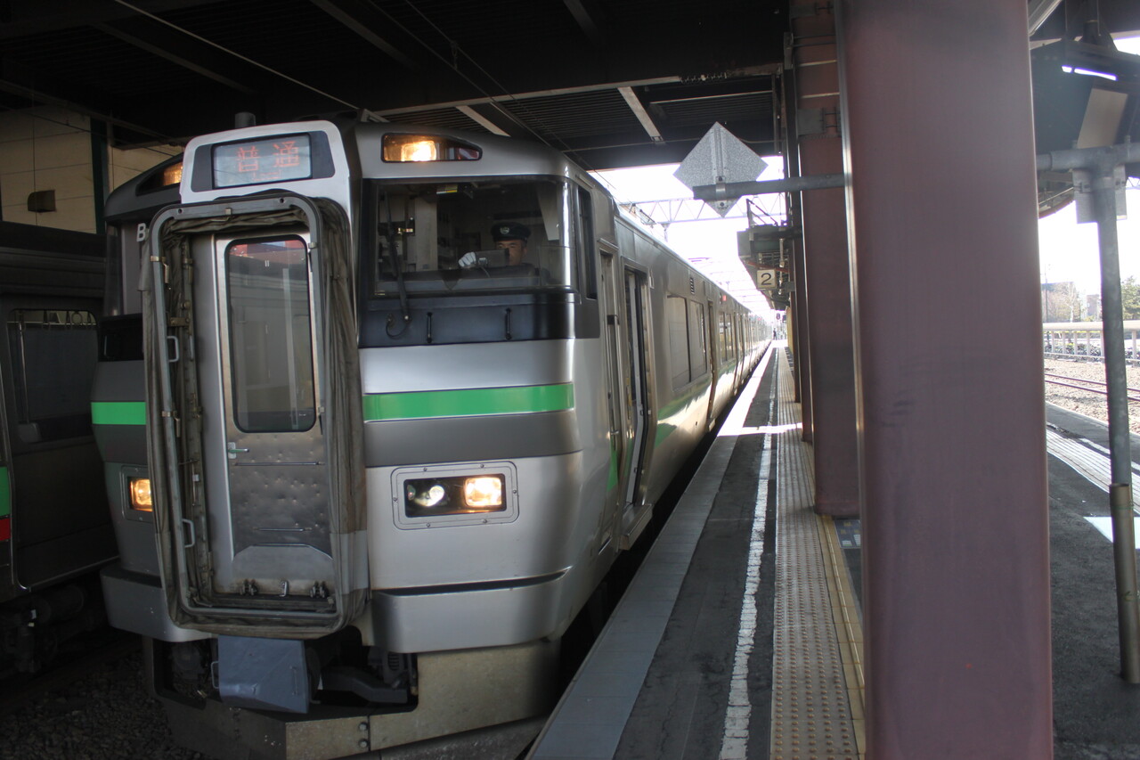 ↑こちらは1番線に入ってきた上り普通列車札幌行です。